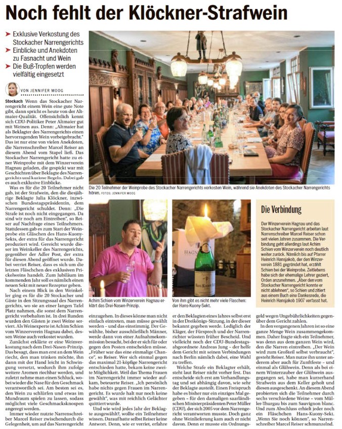 Gemeinsam mit der Winzergenossenschaft Hagnau vom Bodensee erfahren wir allerlei zu Thema "Wein und zur Stockacher Fasnacht".
